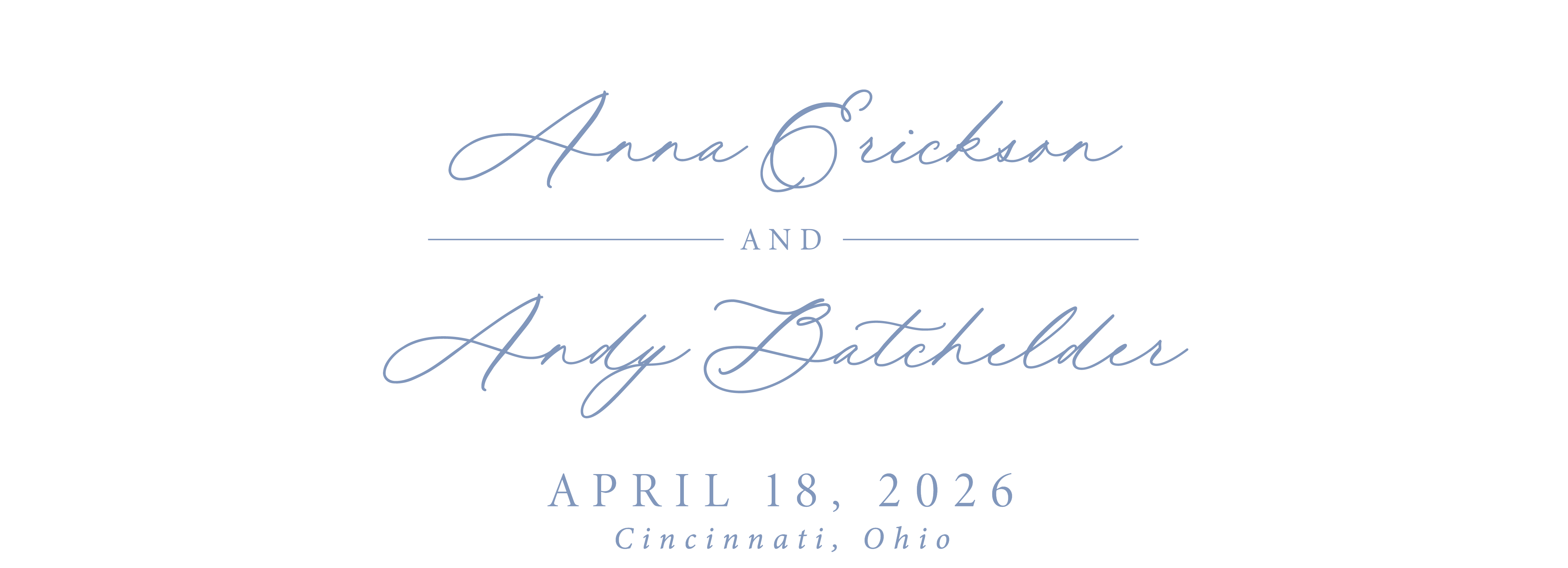 We can't wait to welcome you to Cincinnati next spring! Whether you're traveling from near or far, or simply joining us in spirit, we are so grateful that you are a part of our story.We’ve created this space to share all the details of our big day — from the schedule and venue to some meaningful places to visit.Thank you for being part of our lives and this celebration. We can't wait for an evening full of laughter and love!